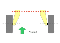 Стоит отметить, что на практике угол развала задаётся весьма грубо (допуск при его установке обычно сравним с его величиной) и, к тому же, довольно сильно меняется при работе подвески (даже у имеющей весьма совершенную кинематику подвески на двух поперечных рычагах как правило при максимальном ходе сжатия изначально заданный положительный развал сменяется отрицательным). Так что на практике его установка преимущественно влияет на равномерность износа протектора передних шин — неправильно выставленный развал приводит к повышенному износу внутренней или наружной стороны протектора шины. Кроме того, развал должен быть одинаковым с обеих сторон, так как при одностороннем наклоне колес автомобиль начинает «вести» в сторону при движении по прямой.