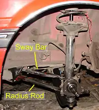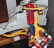Подвеска автомобиля (тж: Система подрессоривания автомобиля) — совокупность устройств, обеспечивающих упругую связь между несущей системой и колёсами (или мостами) автомобиля, уменьшение динамических нагрузок на несущую систему и колёса и затухание их колебаний, а также регулирование положения кузова автомобиля во время движения.[1] Свойства подвески конкретного автомобиля зависят от различных параметров (неподрессоренных масс автомобиля, кинематики подвески, колёсной базы, колеи, жёсткости кузова) и взаимодействия отдельных деталей (от типа и жёсткости упругих элементов, амортизаторов, стабилизаторов, шарниров, рычагов, и особенно от шин).[2]