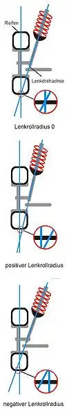 Таким образом, плечо обката (Scrub Radius) — это расстояние по прямой между точкой, в которой ось поворота колеса пересекается с дорожным полотном, и центром пятна контакта колеса и дороги (в ненагруженном состоянии автомобиля). При повороте колесо «обкатывается» вокруг оси своего поворота по этому радиусу.