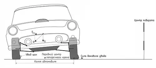 Угол поперечного наклона шкворня (оси поворота колеса) отвечает за весовую стабилизацию управляемых колёс автомобиля. Благодаря наличию у оси его поворота поперечного наклона колесо стремится вернуться к нейтральному положению в повороте под воздействием массы автомобиля (самовозврат руля в повороте).