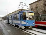 - трамвай ЛВС-89: синие полосы на белом фоне