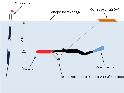 - Ориентир — Тонкий высокий полосатый буй. Достигнув ориентира спортсмен притапливает его.