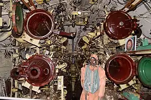 6 носовых торпедных аппаратов калибром 533 м, боезапас 24 торпеды, или 44 мины. Дополнительно можно разместить 12 торпед (или 24 мины) во II отсеке, за счет ухудшения обитаемости. |