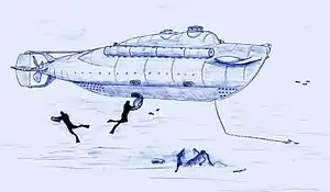 ![]() Мини-субмарина СА-3 высаживает боевых пловцов, рисунок |