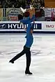 - c) Lunge (Выпад) – движение, при котором фигурист скользит по льду с одной ногой, согнутой в колене (угол между бедром и голенью не более 90°) и другой ногой, вытянутой сзади, ботинок или конёк которой находится на льду.