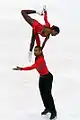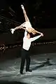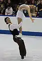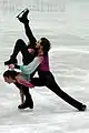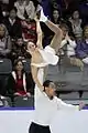 - e) Reverse Rotational Lift (поддержка с вращением в обе стороны) — поддержка, при исполнении которой поднимающий партнёр, скользя (продвигаясь по льду), вращается сначала в одном, а затем в другом направлении.