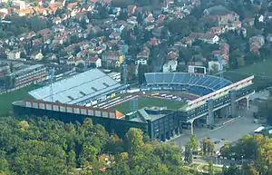 ![]() Стадион «Максимир», построенный на месте сожжённого стадиона | |||
