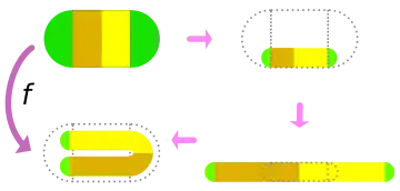 Отображение «Подковы Смейла», F, разбитое на три последовательных операции