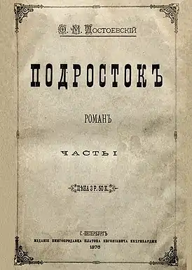 «Подро́сток» — роман Фёдора Михайловича Достоевского, начат в феврале 1874 и закончен в ноябре 1875 года. Впервые опубликован в 1875 году в журнале «Отечественные записки» с подзаголовком «Записки юноши». Предпоследний роман «пятикнижия Достоевского», в которое также входят «Преступление и наказание», «Идиот», «Бесы» и «Братья Карамазовы».