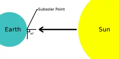 - Ian Ridpath, ed. (1997). “subsolar point”. A Dictionary of Astronomy. Oxford; New York: Oxford University Press. ISBN 0-19-211596-0.