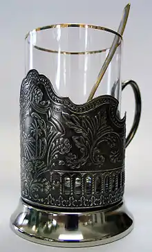 Подстака́нник — подставка, охватывающая и поддерживающая стеклянный стакан, в большинстве своём цилиндрической формы, имеющая ручку для того, чтобы употреблять горячий чай, не обжигая ладони. В России и СНГ подстаканники традиционно используются в железнодорожном транспорте как обязательный элемент сервировки стола (их использование значительно повышает устойчивость стаканов). Кроме того, подстаканники служат для отвода тепла, чтобы стаканы при наливании в них кипятка не лопались.