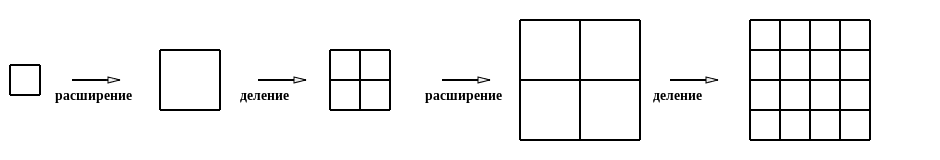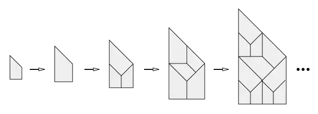 Повторяя эту подстановку, всё большие и большие области плоскости будут покрываться квадратной сеткой. Более сложный пример из двух протоплиток показан ниже.
