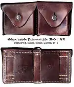 - Подсумок обр. 1911 г. (Patronentasche 11) для основного оружия немецкой пехоты — карабина Kar.98k, принятого на вооружение в 1934 г. (хотя использовались и другие модели винтовок и карабинов Маузера калибра 7,92 мм), были такими же, как и подсумки обр. 1909 г., но каждая секция вмешала по две обоймы из пяти патронов калибра 7,92 мм, всего 30 патронов в каждом подсумке. Их часто называют подсумками обр. 1909 г., но это неправильно. Подсумок обр. 1911 г . первоначально был введён для использования альпийскими стрелками, позже, в 1933 г., заменил собой подсумок обр. 1909 г . во всех сухопутных войсках.