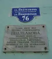 - Именем Подтёлкова названы улицы и переулки во многих городах, сёлах и станицах Ростовской области, таких как: Ростов-на-Дону, Шахты, Каменск-Шахтинский, Донецк, Батайск, Аксай, Гуково, Новошахтинск, Пролетарск и других; а также в некоторых городах других регионов, таких как: Серафимович и Новоаннинский в Волгоградской области, Енакиево в Донецкой области.