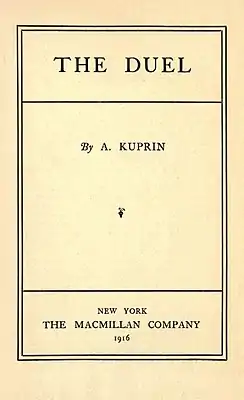 «Поеди́нок» — повесть Александра Ивановича Куприна, опубликованная в 1905 году. В повести описывается история конфликта молодого подпоручика Ромашова со старшим офицером, развивающегося на фоне столкновения романтического мировоззрения интеллигентного юноши с миром захолустного пехотного полка, с его провинциальными нравами, муштрой и пошлостью офицерского общества. Самое значительное произведение в творчестве Куприна[1][2].