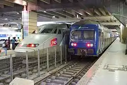 Ещё одним типом самоходного подвижного состава является моторный вагон, который, как понятно из названия, представляет собой вагон, но оборудованный двигателем. Моторный вагон, как и локомотив, приводит поезд в движение, но его пространство внутри кузова можно использовать для перевозки полезной нагрузки. Имея относительно небольшую мощность, моторные вагоны получили распространение на перевозках небольших объёмов грузов или числа пассажиров, когда можно ограничиться всего несколькими вагонами, а использовать локомотив в качестве тяги экономически нерационально, как, например, в пригородных и внутригородских перевозках. При этом возможно формирование небольших постоянных сцепов, состоящих из моторных вагонов и обычных; последние при этом называются прицепными вагонами. Такой подвижной состав называется моторвагонным и в некоторых справочниках его даже относят к ещё одной разновидности, так как он занимает промежуточное положение между самоходным и несамоходным подвижным составом. Как и в случае с локомотивами, ранние моторные вагоны использовали паросиловую установку (паровозо-вагоны), которую в XX веке сменили двигатель внутреннего сгорания (дизель-поезда) и электроэнергия (электропоезда)[34][35][36]. За некоторым исключением, моторные вагоны используются для пассажирских перевозок, хотя существуют французские почтовые электропоезда TGV La Poste и британские грузовые дизель-поезда MPV.