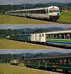 - Пассажирский — формируется из пассажирских вагонов; также могут прицепляться вагоны других разновидностей пассажирского парка — багажные, почтовые, ресторан и так далее[55];