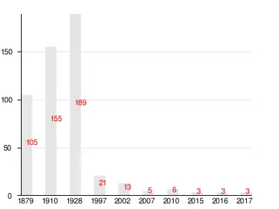 Число жителей по семейным спискам 1879 г.: 46 м. п., 59 ж. п.; по приходским сведениям 1879 г.: 50 м. п., 55 ж. п.[3]