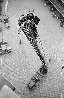 Пожарный автоподъемник — пожарный автомобиль, оборудованный механизированной поворотной коленчатой, телескопической или коленчато-телескопической стрелой, последнее звено которой заканчивается люлькой. Подъём и спуск осуществляется в люльке. Высота подъёма выпускаемых в России АПК составляет от 30 до 50 м. Предназначенный для спасения людей с высоты и тушения пожаров в многоэтажных зданиях.[7]