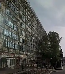 По словам очевидцев аналогичного пожара, произошедшего 10 апреля, первыми загорелись как раз строительные леса, а затем пламя перекинулось на облицовочную плитку. Работы по облицовке зданий ведутся по всему городу уже несколько лет. Однако в сгоревшем здании строители отдали предпочтение фасадным полиуретановым плиткам, которыми обклеиваются фасады зданий, после чего здание красят[18].
