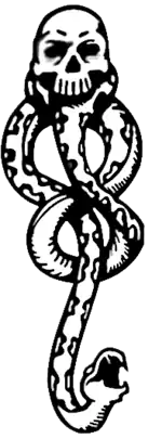 Чёрная метка выглядит как череп со змеёй, выползающей изо рта. Возможно, это символизирует связь Волан-де-Морта с Салазаром Слизерином, поскольку василиск очень похожим образом выползал изо рта статуи основателя факультета Слизерин в Тайной комнате.