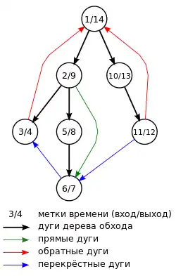 Поиск в глубину с метками времени. Классификация рёбер