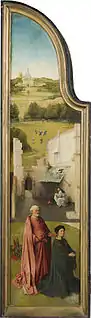 На внутренней стороне створок триптиха изображены Святой Пётр и Святая Агнеса с донаторами.