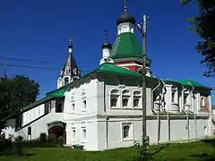 В XVII веке храм был окружён новыми постройками и оказался как бы «утопленным» посреди этих объёмов. Среди пристроек — четырёхгранная шатровая колокольня, на которой некогда были установлены часы, исчислявшие время по восходу и заходу солнца. Фрагменты старинного часового механизма хранятся в местном музее.