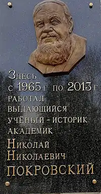 На здании Института истории СО РАН открыта мемориальная доска Покровскому[4].