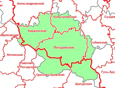 Располагался на части территорий современных Петушинского, Киржачского, Кольчугинского и Собинского районов Владимирской области, Орехово-Зуевского и Шатурского районов Московской области.