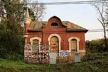 Ансамбль железнодорожной станции Покровское-Стрешнево — два станционных дома, 1907 г., арх. С. А. Бржозовский — объект культурного наследия регионального значения[2].