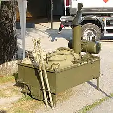 Макет абстрактной полевой кухни времён войны в музее-заповеднике «Прохоровское поле». Отдаленно напоминает упрощенную КП-41 с бескаркасной обшивкой котла.