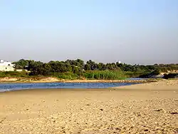 Площадь водосборного бассейна — около 200 км². Название реки происходит от места, где прибрежный хребет из куркара был пробит для осушения болот. Возможно, это было сделано ещё в бронзовом веке[1].