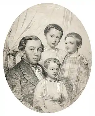 Портрет Д. В. Поленова с сыновьями Василием, Константином и Алексеем, 1853 г.