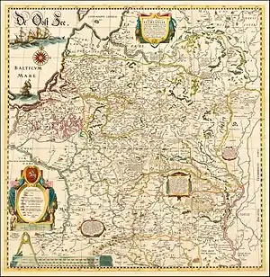 В 1560 году в Данциге была издана первая известная карта Полесья (Tabula Paludum Polesie Dr Ziekera). В исторических трудах Яна Длугоша[26], Мартина Кромера[27] и Матея Стрыйковского[28] топоним Полесье встречается неоднократно. Границы региона обозначались по-разному, однако в целом Полесье вписывалось в бассейн реки Припять. Кромер локализовал Полесье как землю, лежащую между Русью, Литвой, Пруссией, Волынью и Мазовией. В 1613 году Г. Гарритсом была издана карта Восточной Европы, на которой Полесье простиралось от Бреста до Мозыря и от Пинска до Дубровицы и Волыни.