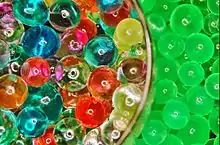 Впитавшие воду подкрашенные шарики полиакрилата натрия