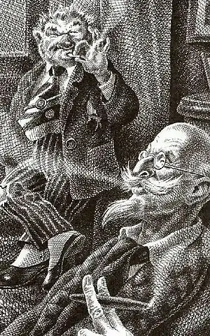 ![]() П. П. Шариков и профессор Ф. Ф. Преображенский. Графическая работа художника Сергея Лемехова | |