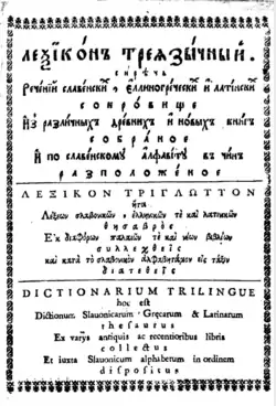 - «Лексикон треязычный, сиречь речений славянских, эллино-греческих и латинских сокровище» (декабрь 1704), в составлении которого принимали также участие Стефан Яворский и братья Лихуды и которым пользовались до 1770-х годов;