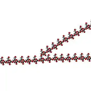 Целлюлоза и хитин — структурные полисахариды. Целлюлоза служит структурной основой клеточной стенки растений, это наиболее распространенное органическое вещество на Земле.[6] Она используется при производстве бумаги и тканей, и в качестве исходного сырья для производства вискозы, ацетилцеллюлозы, целлулоида и нитроцеллюлозы. Хитин имеет такую же структуру, но с азотсодержащим боковым ответвлением, увеличивающим его прочность. Он есть в экзоскелетах членистоногих и в клеточных стенках некоторых грибов. Он также используется во многих производствах, включая хирургические иглы. Полисахариды также включают каллозу, ламинарин, хризоламинарин, ксилан, арабиноксилан, маннан, фукоидан и галактоманнаны.