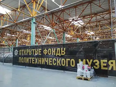 Работа по подготовке главного здания к реконструкции в 2011—2012 годах включала и перевоз музейного фонда во временное хранилище на территории центра «Технополис. Москва». Политехническую библиотеку вывезли туда же, в специально подготовленные помещения, предназначенные для хранения редкого фонда. Доступ читателям открыли к январю 2014-го[160][161], а в ноябре запустили экскурсии по Открытому фонду[162]. Лекторий Политеха и площадка детских программ расположились в обновлённом ДК ЗИЛ[163].