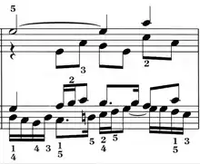 - Имитационная полифония, при которой основная тема звучит сначала в одном голосе, а потом, возможно, с изменениями, появляется в других голосах (при этом основных тем может быть несколько). Форма, в которой тема повторяется без изменений, называется каноном. Вершиной форм, в которых мелодия изменяется от голоса к голосу, является фуга.