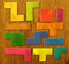 - фиксированная (англ. fixed) полиформа — фигура, которую не разрешено ни зеркально отображать, ни вращать.
