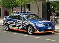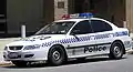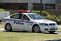 Полицейский автомобиль Западной Австралии без опознавательных знаков , мигающий свет виден в лобовом стекле (около капота)