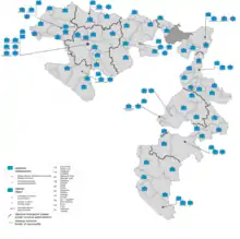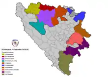 - Центр общественной безопасности Баня-Луки охватывает территории городов (деревень, общин) — Баня-Лука, Мрконич-Град, Градишка, Кнежево, Србац, Котор-Варош, Челинац, Лакташи, Шипово, Горни-Рибник.