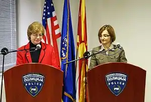 Глава МВД Гордана Янкулоская (справа) с послом США в Македонии Джилиан Милованович (2007 год)
