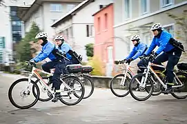 Конная полиция существовала в некоторых коммунальных или кантональных полициях, например, в Женеве, Мартиньи, Невшателе, Ивердоне, Цюрихе (город). От этих экспериментов отказались по причине дороговизны. Девять всадников, в том числе восемь женщин, были снова наняты в кантоне Женева в апреле 2018 года[47].