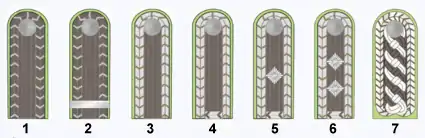 | звания | Генерал-полковник | Генерал охранной полиции | Генерал-лейтенант | Генерал-майор | Полковник | Подполковник | Майор | Капитан | Обер-лейтенант | Лейтенант |