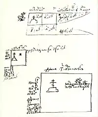 Олеарий описывает встречу «турского» посланника в Москве. У встречавших посланника войск было шесть знамён. Одно из белого атласа, в лавровом венке написан двуглавый орёл под тремя коронами с надписью Virtute Supero (Доблестью побеждаю). Три знамени голубых с белым: на одном изображён гриф, на другом улитка, на третьем рука с мечом. Одно знамя из красной камки, на нём написана голова Януса. Одно красное знамя без изображений.