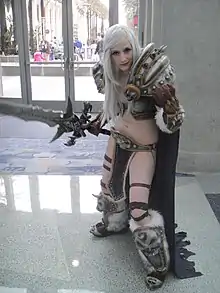 Архетип девы-воительницы, одетой в скудные доспехи, часто встречаются ещё в фильмах и спектаклях с 1960-х годов[91]. Конструкцию их брони можно описать такими определениями, как «кольчужное бикини» или на английском «bikini armor» — декоративные пластины, покрывающие самые интимные части тела[92]. В русском языке за этим описанием закрепилось слово «бронелифчик» или «бронебикини»[93]. На практике такой костюм никак не защищает от изменений в погоде, ограничивает маневренность движения и оставляет беззащитными самые жизненно важные органы. Таким образом такая броня не просто не эффективна в сражении, но и может прямо мешать и обездвиживать женщину[94]. Если мужские персонажи в фэнтезийных играх изображаются полуголыми, то отсутствие брони как правило компенсируется их массивными и сверхчеловеческими габаритами тела, в то время, как все полуголые женские персонажи обладают худощавым и хрупким телосложением[93]. Стоит заметить, что разработчики, использующие «бронелифчики» в целом склонны изображать непрактичную броню ради зрелищности, например одевать мужских персонажей в сверхмассивные доспехи, которые в теории обездвиживали бы их частично или полностью[93]. Образ полуголой девы-воительницы не уникален для компьютерных игр и в целом отражает гендерные стереотипы, заложенные гик-культуре, включая видеоигры, комиксы и фильмы[86].