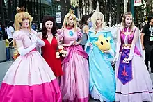 Женские персонажи в основной своей массе играют роль второстепенных персонажей. Многие самые известные героини из компьютерных игр воплощают архетип девы в беде, их спасение выступает главной целью у мужского героя[50][51]. Самые известные примеры — принцесса Зельда из серии The Legend of Zelda, дочь султана из игры Prince of Percia или принцесса Пич из игр серии Mario. Пич рассматривается, как самый известный характерный пример «девы в беде». К 2013 году, Пич появлялась 14 играх и в 13 из них она похищалась, чтобы затем её спасал герой Марио. Только в двух играх она была игровым персонажем — Super Mario 2 и Super Mario 3D World. За принцессу Зельду можно было играть в некоторых более поздних играх серии Zelda[52]. Шенон Шарман, в своём исследовании о женских персонажах, нуждающихся в спасении от мужчин заметила, что это один из самых популярных женских архетипов[53]. Она придерживается мнения, что образы принцесс в беде усиливают вредящие гендерные стереотипы в отношении женщин[53].